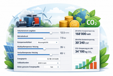 Einsparrechner: Druckluft-Wärmerückgewinnung